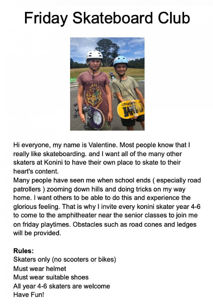 In the last newsletter I sent out before we moved to Alert Level 3 I shared a pretty impressive list of all the exciting things your children can take part in at Konini. Many of these activities take part during break times.