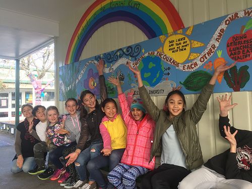 The team who worked on the mural were; Yanine de Boed, Emily Kou, Ava Mohns, Olivia Rasyidi, Katherine Penman, Riaa Jasuja, Anna Khan, Lucas Colman and Fuyuka Shen.