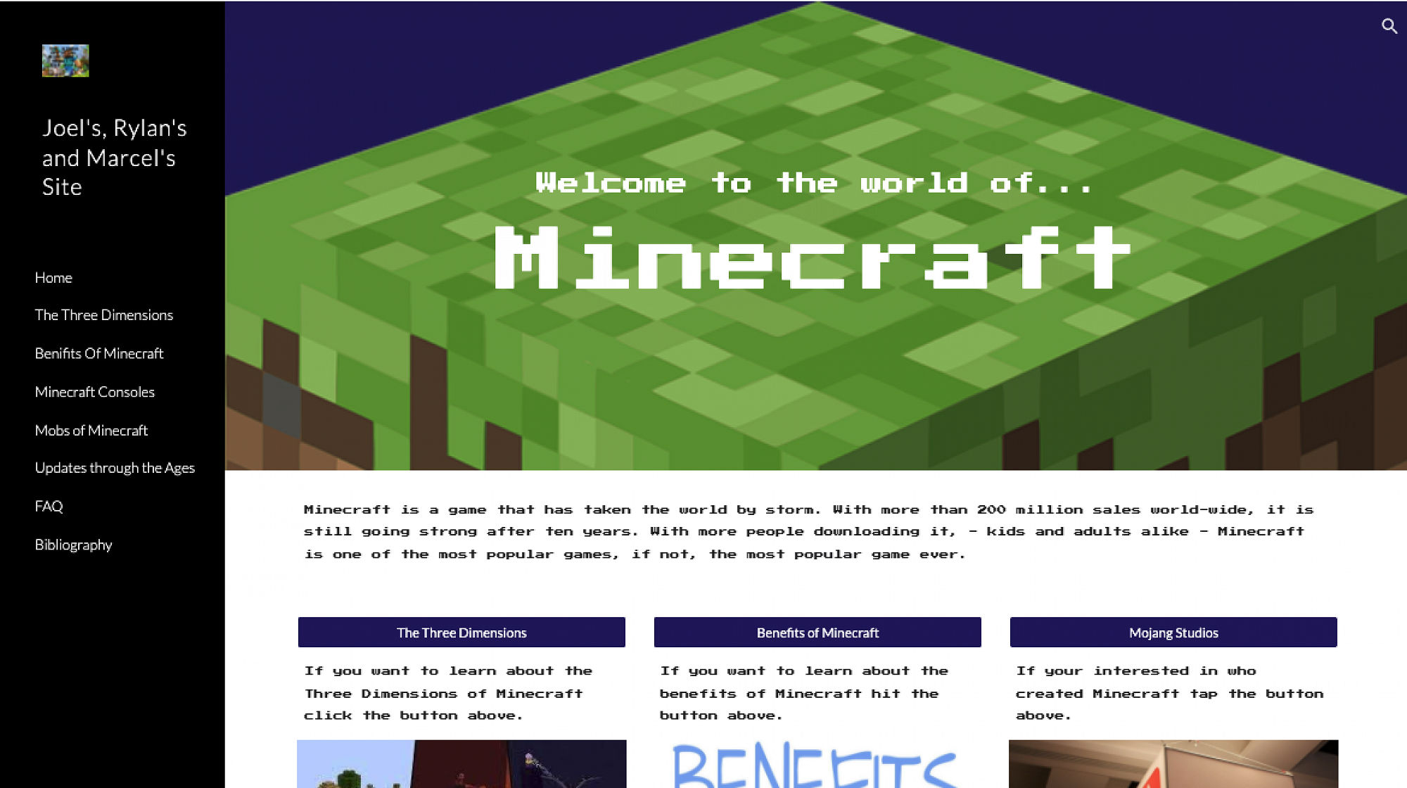 The three students from Banks Ave School worked collaboratively on their 'Unofficial Minecraft' site in web design (with eTeacher Jen Hammonds)