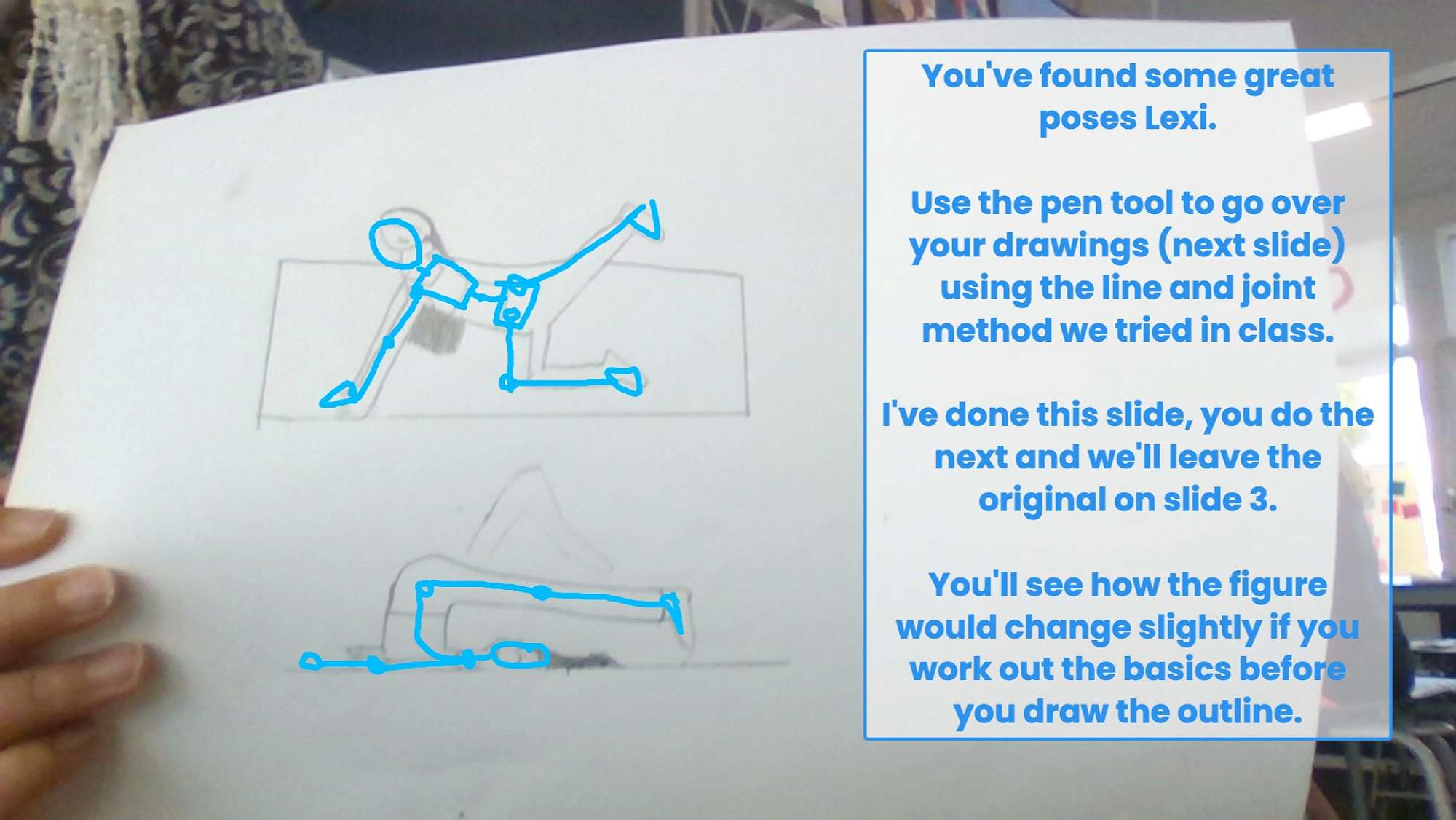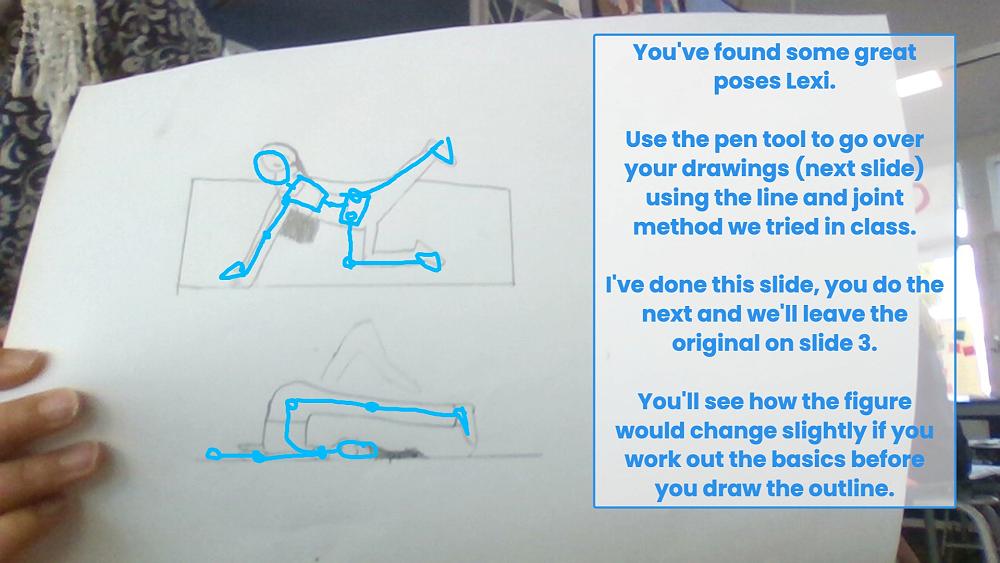 In visual arts, a module on the human form tied in a number of areas students had asked for at the start of semester (figures, movement, perspective, pastels), plus it was an area I was keen to explore! Thinking forward to a few major works, I broke down the skills into studies so students could build a repertoire of techniques.