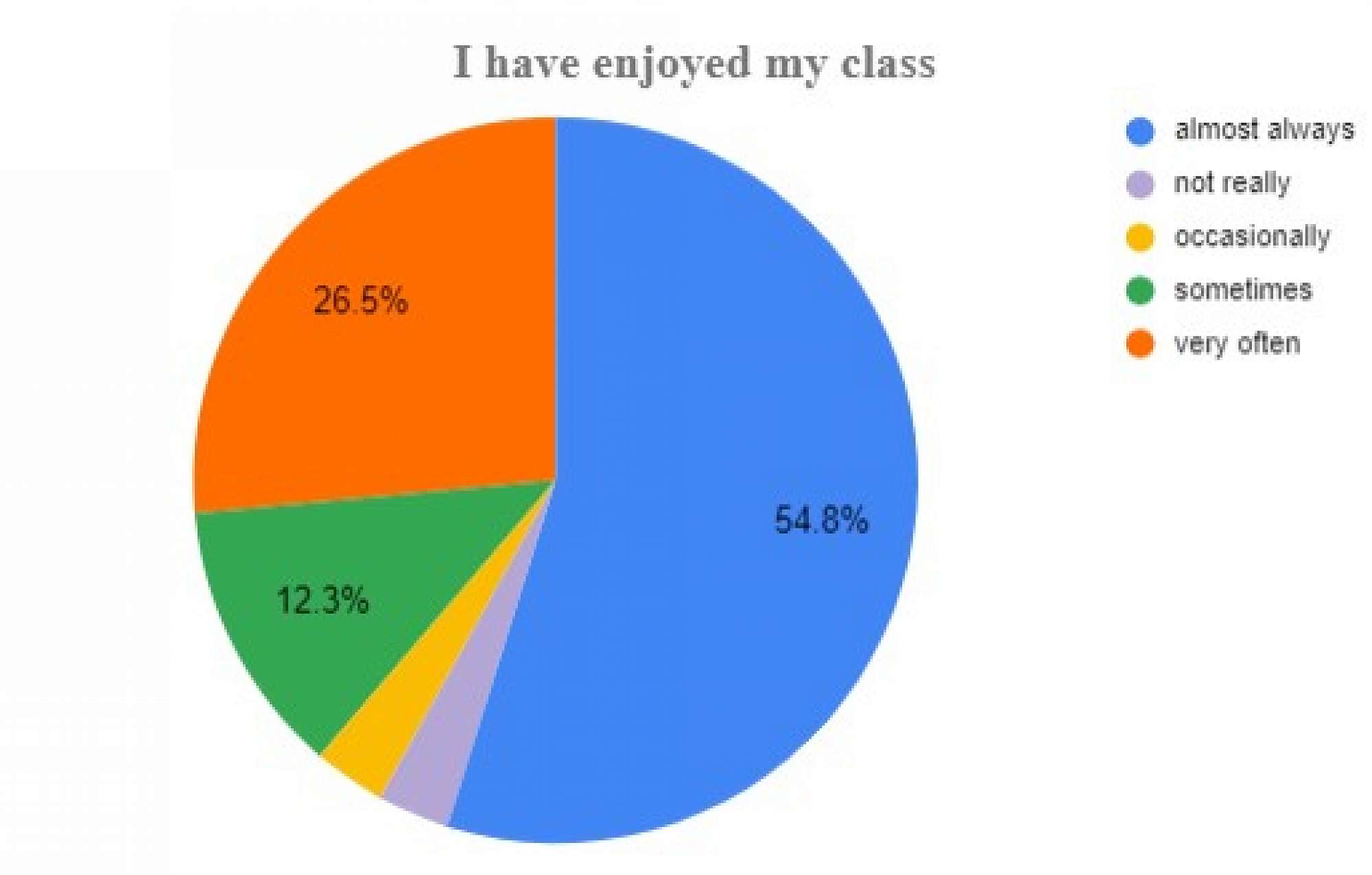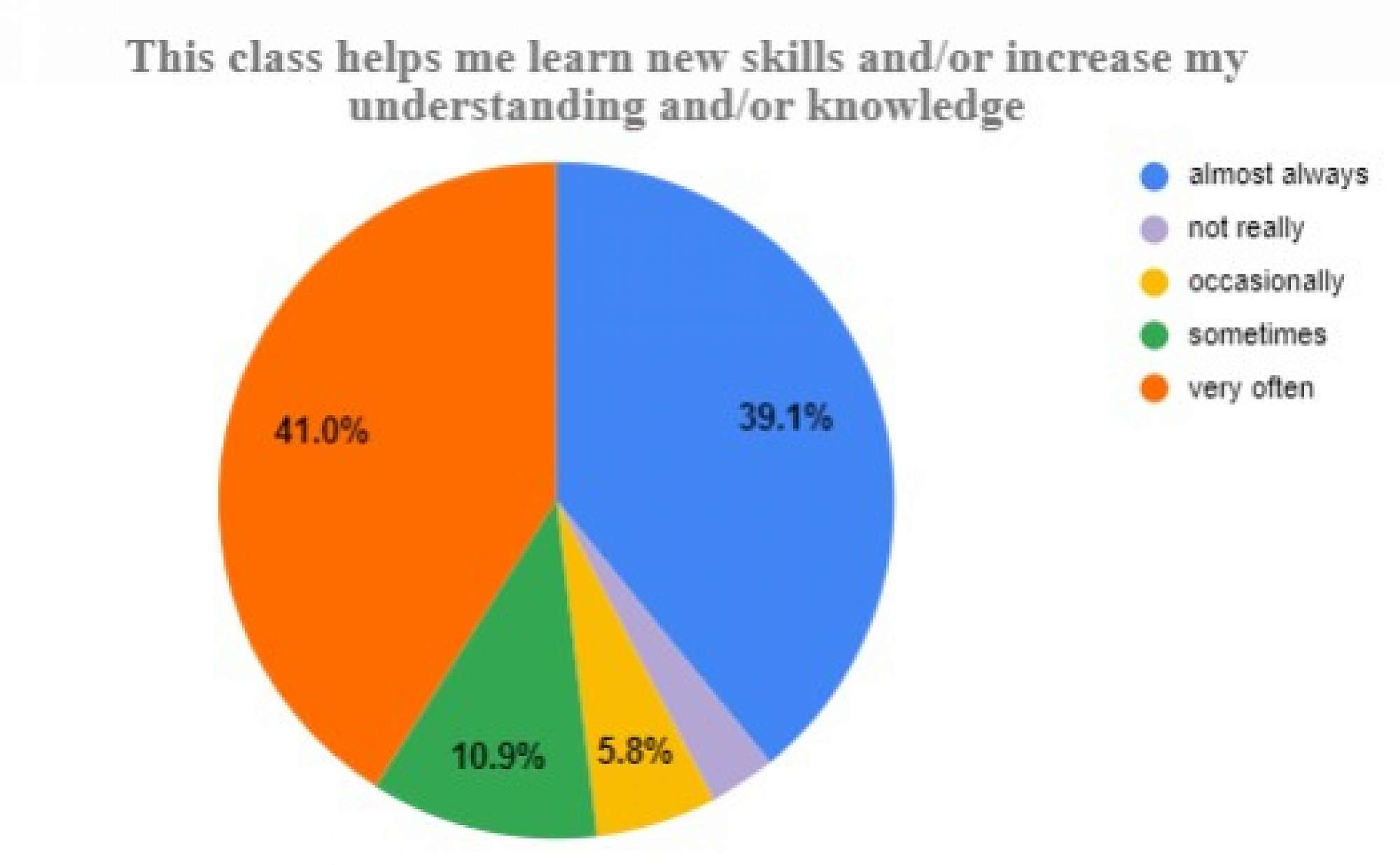 Our learners responded to these statements about each of their online classes. The results are aggregated in the images below: