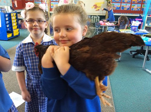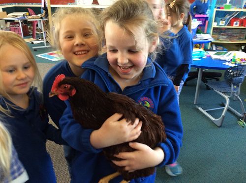 Lots of children got to cuddle Batman. Comments from the children were very positive although she was described as 'noisy during writing time' and she went to sit outside on the step in the cage in the sun for this time.
