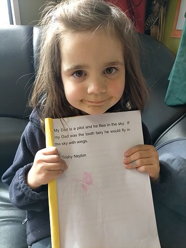 My Dad is a pilot and he flies in the sky. If my Dad was the tooth fairy he would fly in the sky with wings.