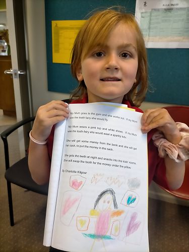 My Mum wears a pink top and white shoes. If my Mum was the tooth fairy she would wear a sparkly tutu.