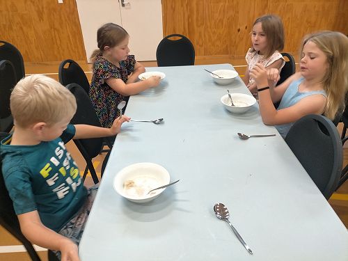 When it was camp and we had some breakfast I had Nutella on toast. Basically, our table was full of Nutella but Honour had butter on toast. Ezzy had five bowls of Weetbix and all of our yummy breakfast. I had like one or two more pieces of toast and so did the others. After that, I went to the bathroom to wash my face. Then we went up to the court to play some games but me and Honour just walked around up and down on the field. Sophia Gardener