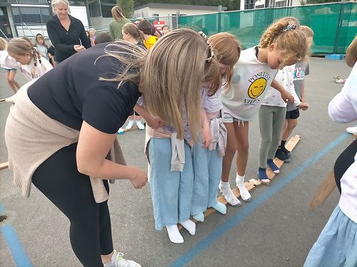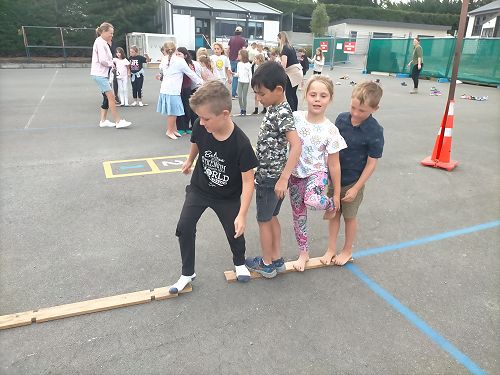 At the school sleepover, we played a game of crocodile river and we came second. Also in our team, we had six people and it was hard after the game Mr Cavanagh sang songs on his guitar and we made fruit kebabs. Evie Grace