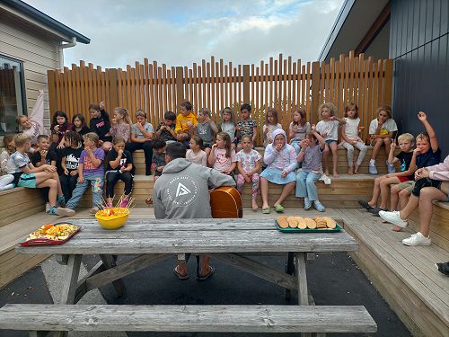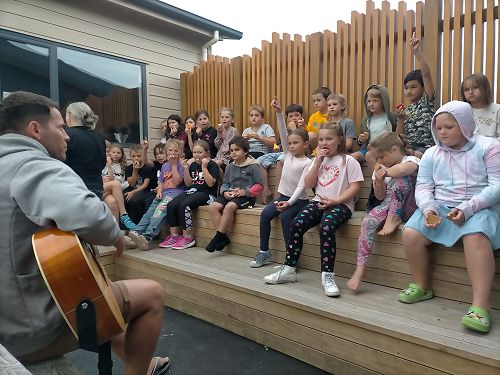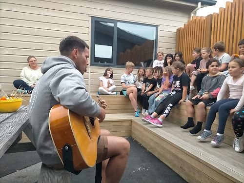 Mr C was singing songs at camp. He was singing a crocodile song and a candy song. We got cookies and fruit at our camp. We had to sing with Mr C and after we got to play go home stay home. We hid in the hedge with my team and with another team in there as well. They stole our spot and we got caught, we didn't win at all. We were so close to winning but we came second place. We still lost but it was still fun. We won last year with Mrs Luck and we played crocodile in the river. We played heaps of games at camp and it was so fun. It was so cool at camp and in the morning all the girls woke me up. I was so tired. I fell asleep and we ate breakfast. I had peaches and Weetbix for breakfast. I brushed my teeth in the morning. Bronik Hicks