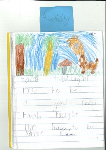 Our Kiwi students enjoyed learning from Helly and Harold about how to be a good friend. The photo above is of the Kiwis surprising Helly with their individual paintings of Harold.
