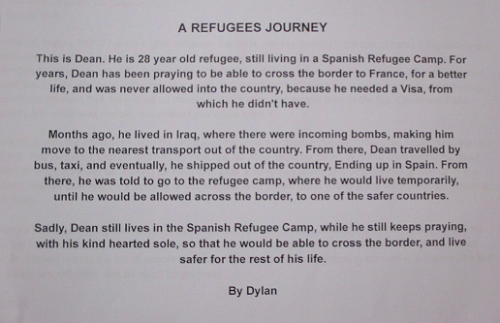 As part of our From Here to There Theme, Tui literacy class has been writing some stories from the Perspective of being a refugee. We have published these stories into a book and they are well worth coming into our classroom to read. The children have mastered the art of using figurative and emotive language and their stories are very powerful.Here are just a couple of our stories from Jodie and Dylan. The class has also been very busy crafting stories for the Hurunui Writing Competition. The topic was around a Time theme and they have produced some very interesting pieces of writing, we wish them luck in the competition!
