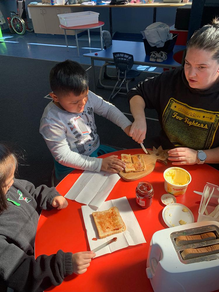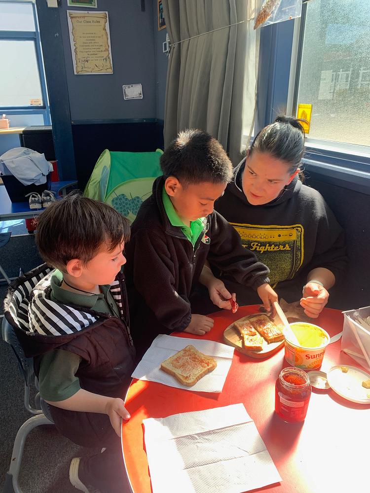 In Rūma 2, we have had many hands-on learning experiences to help us with our learning. Take a look at what we have been doing over the past three weeks. We have created shape rockets to help us recognise different shapes. We have also been building cities. This has helped us reinforce number recognition and learn one-to-one counting skills. This week we have been learning about fractions. We cooked toast and then we cut our toast into quarters.