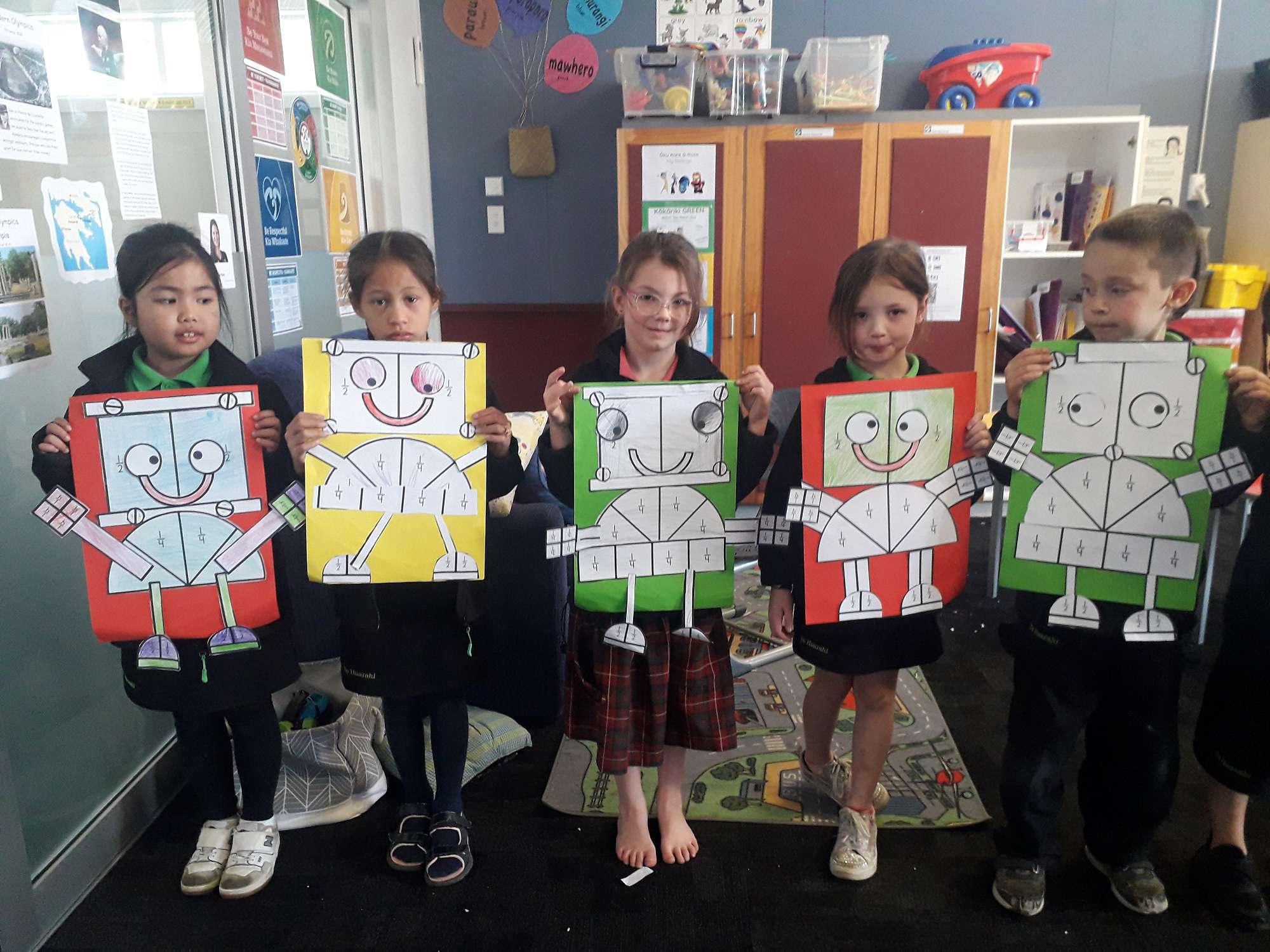For the past two weeks, Rūma 7 has been diving into the world of fractions! We’ve been exploring how to divide shapes, pizzas, and even fruit into equal parts. Through fun activities and hands-on projects, our young mathematicians are learning to recognize halves, quarters, and thirds. We have been learning how to draw and shade unit fractions and demonstrate an understanding of the difference between the numerator and the denominator. We have also learnt about the importance of equal sharing. Check out our awesome Fraction Robots and Fraction Flowers that we made.