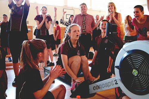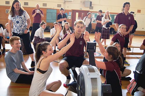 Students competed in Junior and Senior Boys and Girls teams. The rowing machines were connected to the big screen in the Gym so it was exciting watching teams progress and overtake each other. Thanks to Francine Vella and the PE/Sports Department for organising the event.