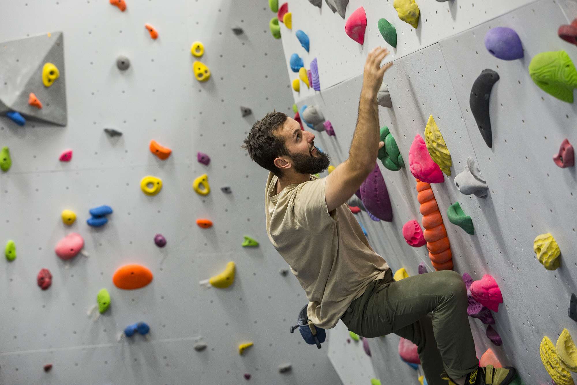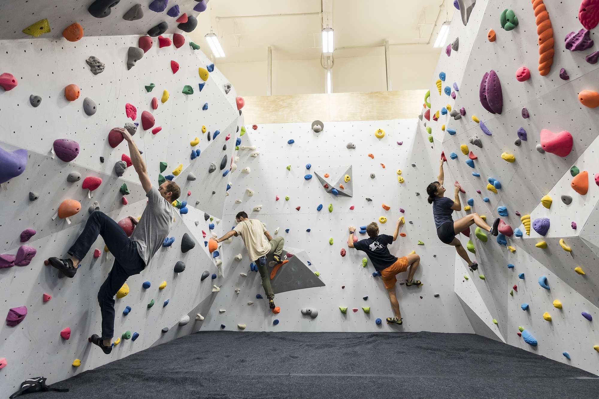 Bouldering is a form of rock climbing that doesn’t involve ropes or harnesses, instead climbing short, yet challenging routes above padded safety mats. Bouldering also allows individuals to climb without a partner. Bouldering is a very inclusive, non-competitive, social sport, that encourages climbers to work together on solving climbs in a positive and supportive manner. Anyone can find their own challenge in bouldering, regardless of size, shape or ability. All of this means climbing is a brilliant and compelling form of physical and mental exercise. Bouldering (especially indoors) is a popular entry point into the sport, as it is accessible, inclusive, fun and social, and doesn’t require expensive equipment. To use this facility you simply need to be 17 or over, have a clean pair of rock climbing shoes or other sports shoes and to have completed the induction process at reception.