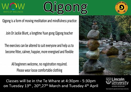 Qi Gong is back for four sessions during March and April in Te Whare. Free to attend, these classes are a great way to get into moving meditation and mindfulness practice.