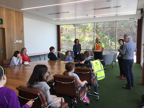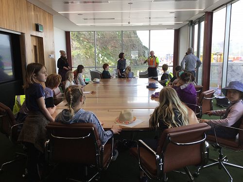 A woman called Kim asked us some questions, for comments on the new building. How it was designed and how we liked it. Then when the second group got there we got into the real stuff. We asked Libby's dad, Phil, some questions about how the technology works, like about the cranes that you see down on the port. They pick up containers it was very cool.