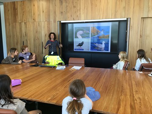 Krystal started her speech about the marine mammals and that plastic bags. A plastic bag can stay in the water for about a hundred years before turning into little miniature particles. For a plastic bottle, it takes about 400 years to degrade. We learned a whole lot about that stuff. Then there was an activity during the marine mammals' speech, it was that we had to rip up a piece of paper in 30 seconds. We got pretty far ripping up our paper but then the time was up. Then she started talking about the animals in Lyttelton Harbor, she does work to protect Hector’s Dolphins, blue penguins stuff like that.