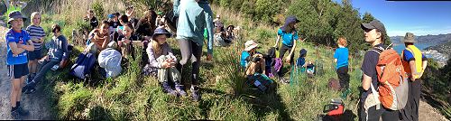 Brent and Charlotte took the students through the pest monitoring track. Where we saw a possum well and truly caught, dead. This supports the preditor-free Port Hills intuitive.