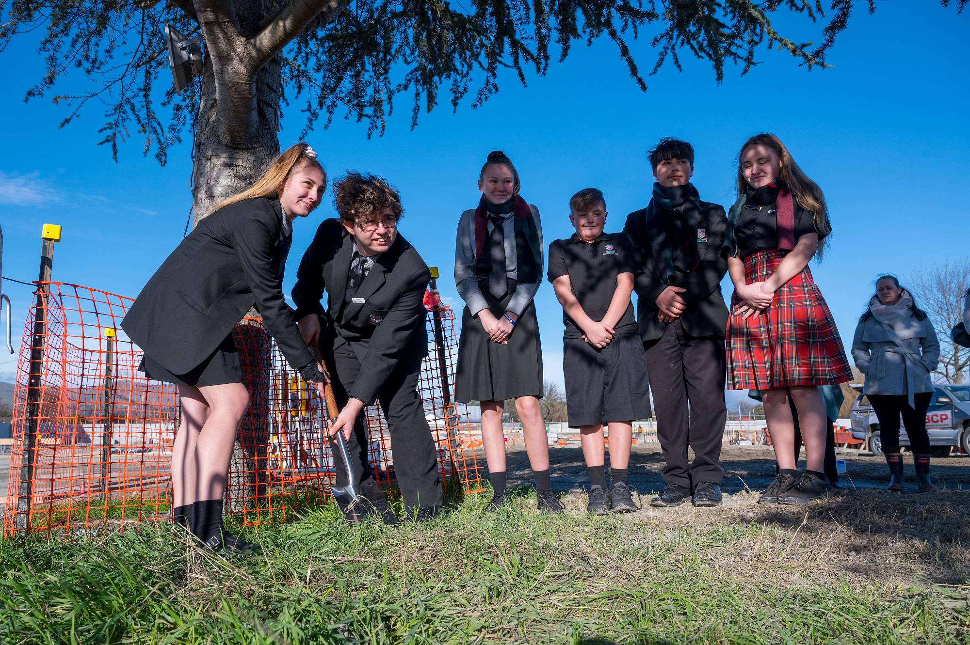 The event began on Aldwins Road where everyone was greeted by Corban Te Aika, Ngāi Tūāhuriri, who led everyone onto the site and blessed the land with karakia. The official sod was dug by our head students and has been retained for reinstating in the official opening.