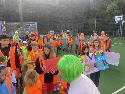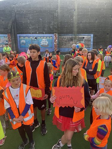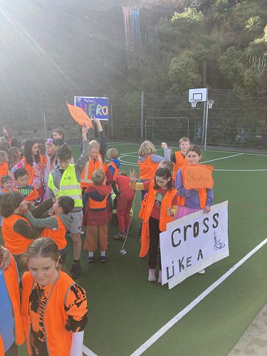 Our school focused on teaching our tamariki to move safely around our community, using the marked pedestrian crossings correctly, and helping drivers to be aware so they slow down around the school area.