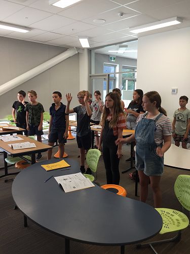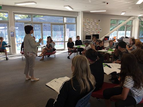 In Totara we have Kuze Sensei and Senora Carasco from Cashmere High School come in on Thursday mornings and teach us phrases and how to introduce ourselves in Japanese and Spanish. The Year 7s are learning Japanese for 6 months and Year 8s Spanish for 6 months, and then we will change over.