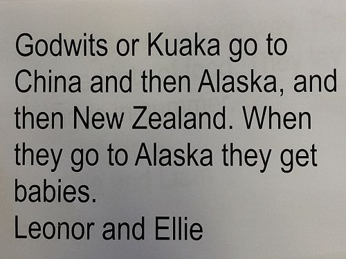 We have been learning about Maori migration from Hawaiki. We have learnt that the Kuaka (Godwits) showed the explorers the way to Aotearoa, as they kept flying over their islands on their way to New Zealand. We made kuaka this week and wrote some stories about them.
