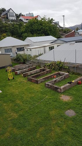 Earlier in the year parents, teachers and students met with Kim Kelleher and Ivan Grooby from the L.P.C. to plan the garden area for the Outdoor Learning Space. This has always been part of the overall plan for Lyttelton Primary School. This meeting was a follow up from the Community Consultation in 2017. During that meeting, the design of the 4 protruding gardens, reminiscent of jetties at a wharf was decided on. Ivan then went away and found the timbers and prepared them for use.
