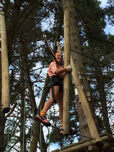 We went to Adrenalin Forest the second day. We arrived at the forest and met Isaac who was one of the instructors. He gave us harnesses and told us how to use them. After that we went off. Alain, Albie and I did the Level 1 first and then went off to do Level 2 but the second obstacle was terrifying. It was a small bridge 10 meters in the air!! Gijs