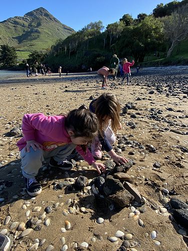 First we got welcomed into the Marae. Then we had some fruit and crackers and corn chips. Finally we went for a walk to the beach.