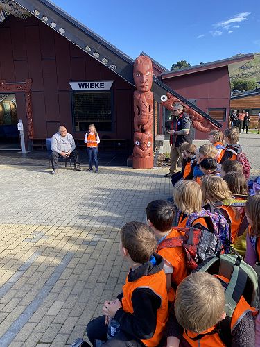 Yesterday Harakeke went to the Marae and we hopped on the bus. When we got to the Marae we put our bags in an office. Then we took our shoes off and came in to the Marae. Then they sang a song to us and we sang a song to them and we had kai. I had a cake and some orange and some apple and some pretzels. Then we went for a walk. Maui showed us a school, inside the school there was spider webs.