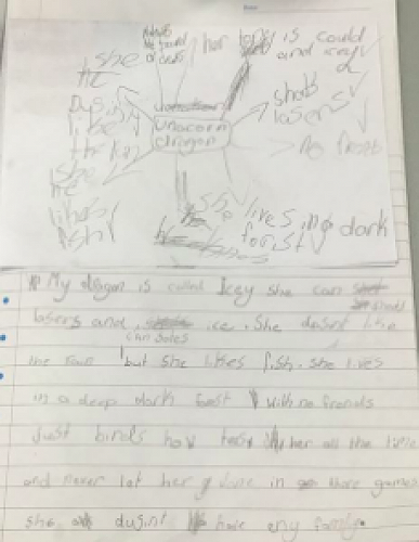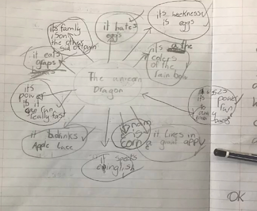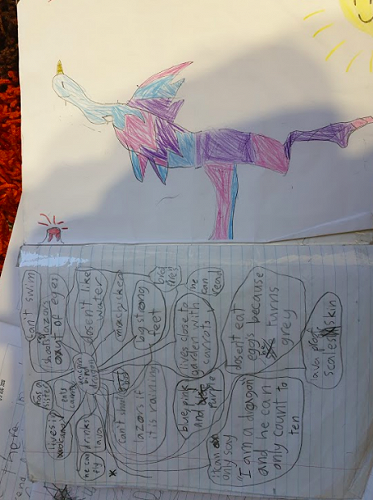 Dinah's group have been focussing on labelling their dragon pictures.