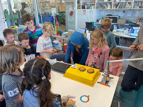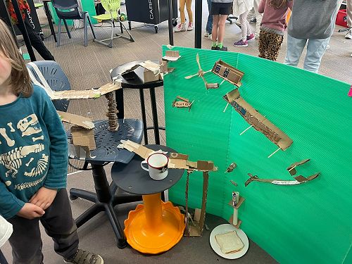 Then the younger students of the school came up to have a look at what we had made. We led them around looking at the other things that other people had made. They were so interested in some of the machines other people had made even though some of the machines weren't actually an operation. The classes came up one by one from the oldest kids to the youngest kids. All the machines did different things. For example our one made lemonade which did not taste very nice because it wasn’t made of actual lemon. Instead it was made of Lemon tea bags.