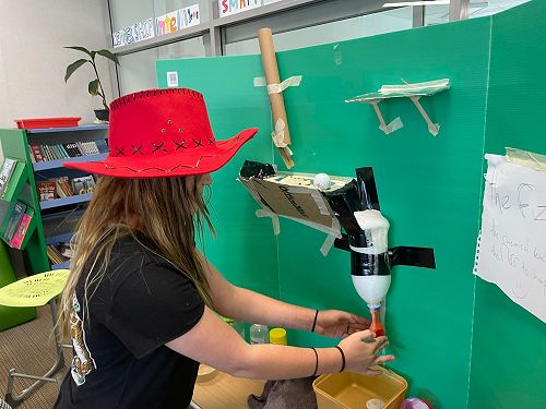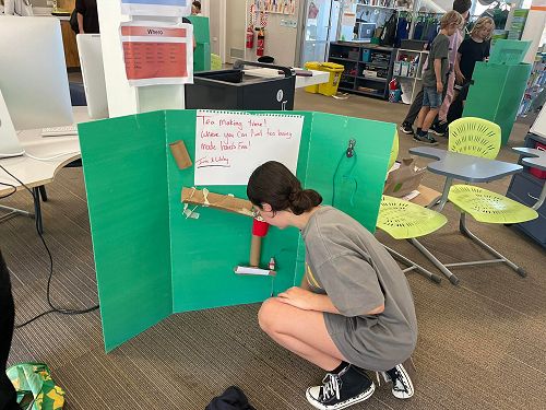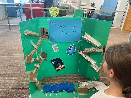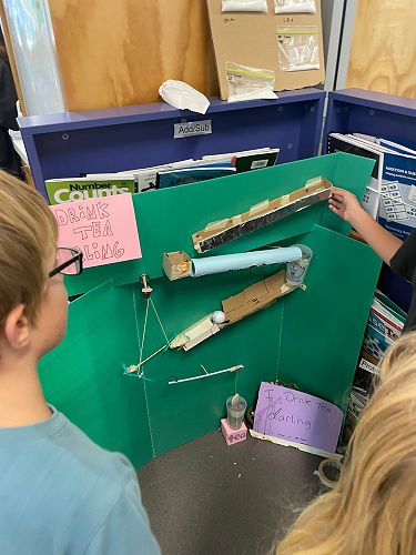 The Rakinui students have been making Rube Goldberg machines which are simple machines that do a simple task in a complicated way. We made them out of cardboard and things we found at home like old toys and whatever we could find to make simple machines to do easy tasks in a complex way. We spent two whole days creating these machines. Before we made these machines we learnt about simple machines that we then used in our machines. We tested them many times and when they were working we took videos of them and then photos that we then put on to our Google classroom. On the form we wrote about how many simple machines we used and how machines work and then we sent that form to our parents and family.