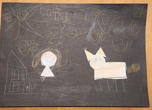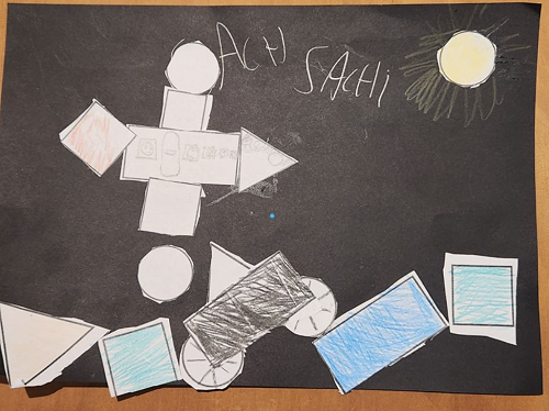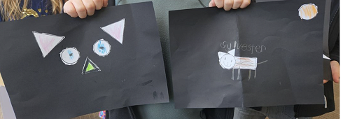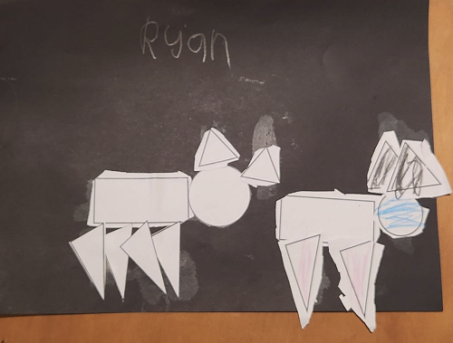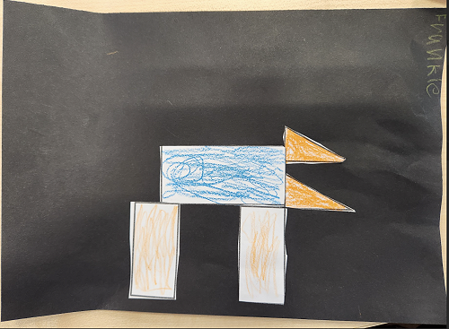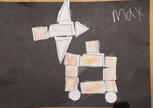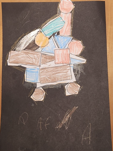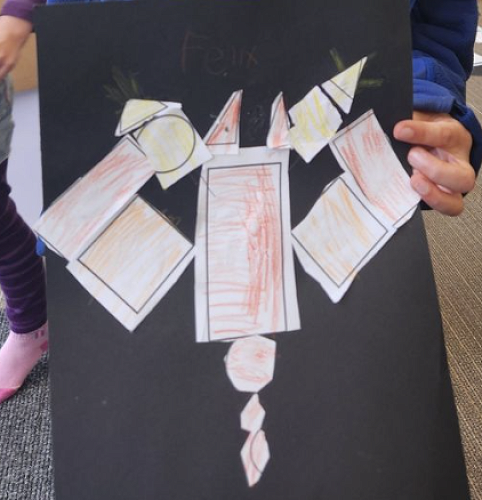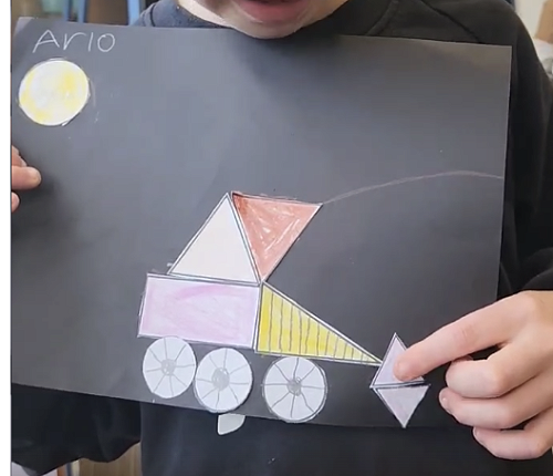 The tamariki are so proud of their artworks using shapes. They have been super creative in identifying the right shape to represent the picture they envisage. We have had super rich discussion around the attributes a shape has, that make it perfect to show, for example, an animal body part, or the front of a tank!