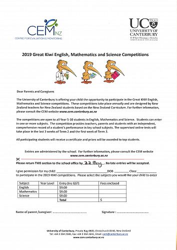 The Great Kiwi English, Mathematics and Science competitions are being offered again this year for Year 5 - 8 students.