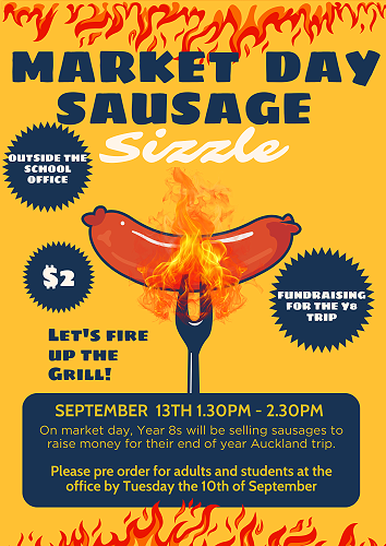 *The kai on offer will be a Sausage Sizzle lead by our year 8s fundraising for their Auckland trip. Please pre order at the office to support their endeavours as well!