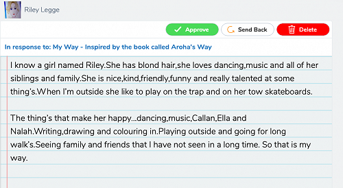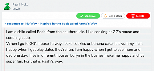 This week the children of Kōwhai have done a reading and writing activity based on the book Aroha's Way by Craig Phillips.