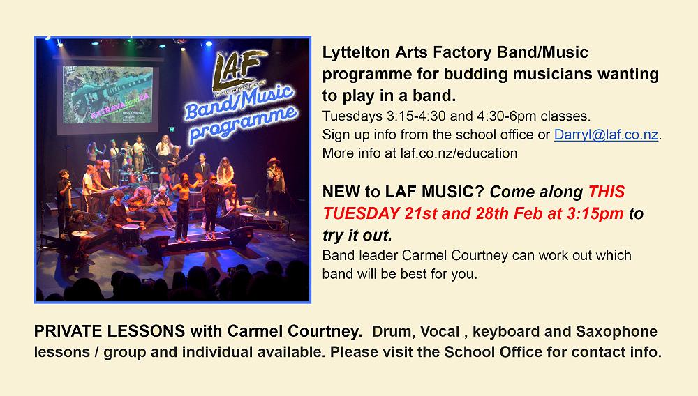 Lyttelton Arts Factory Band/Music programme for budding musicians wanting to play in a band.