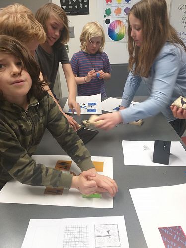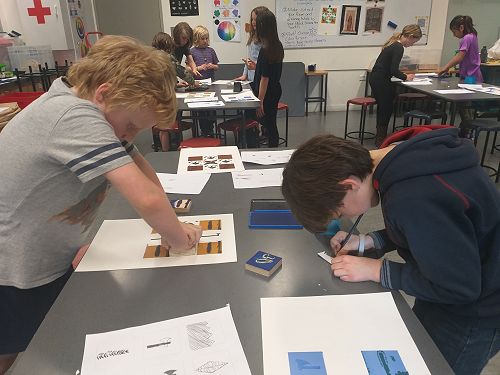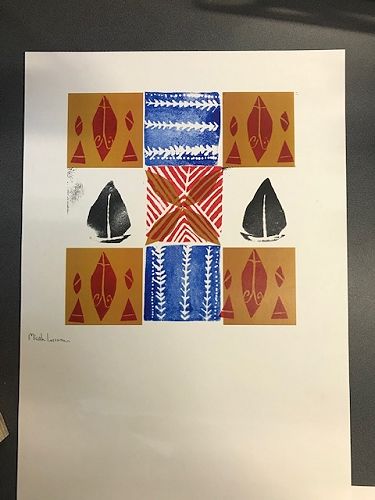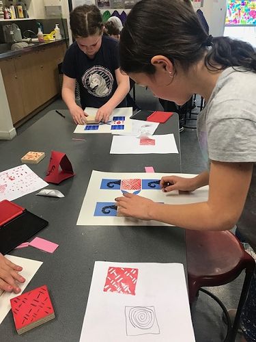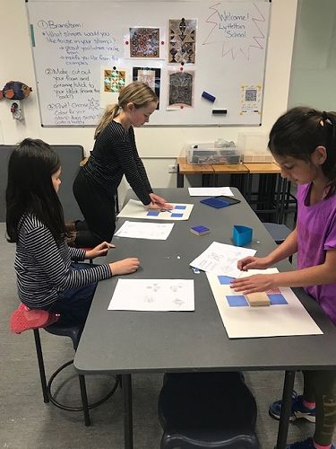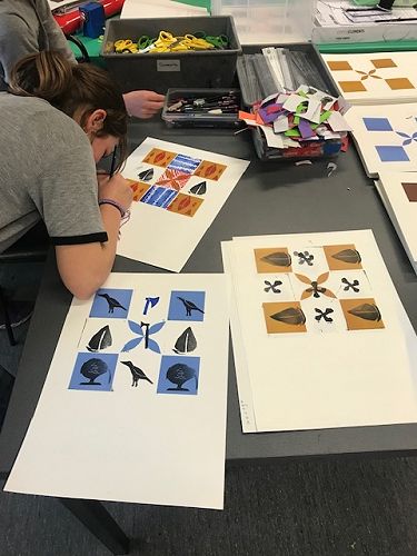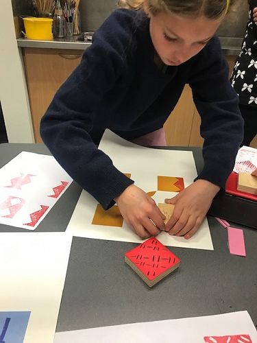 For the afternoon we were in the classroom session. We explored Pacifica printmaking and we made stamps! We got a block of wood and foam then cut out the shape we wanted and stuck it on the wooden block. Then we got ink pads and paper and created an artwork.