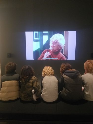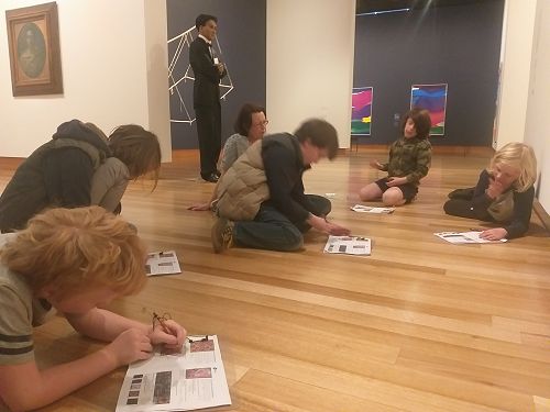 When we got to the gallery we sat outside while the teacher sorted out our little groups with the adults. We got a worksheet for a scavenger hunt at the gallery, then we all split up to look for what our worksheet said.