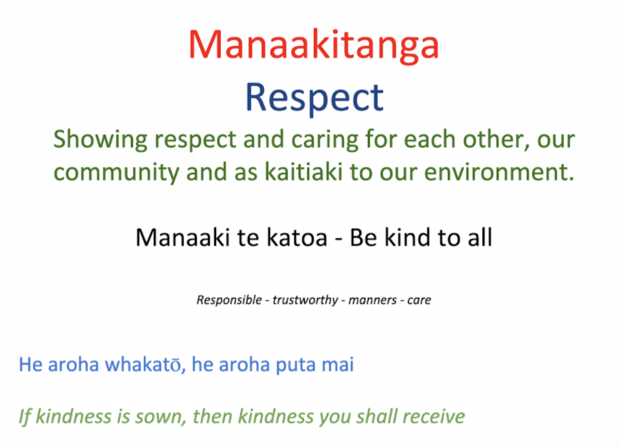 Our school values now reflect a stronger connection to te reo and Ngā Uara and we are developing and extending the use of these across the school.