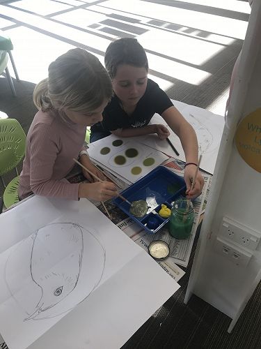 I would like to thank Andrea Solzer and Ruth Conner who arranged for ten local artists to take a 1.5 hour workshop here at school. Without them, this collaboration would not have got off the ground. We had Caine Tauwhare making Maori Masks, Liliana Sequeira and Mario teaching Urban Sketching, Alex Hallatt taking Cartooning, and Jessie Rawcliffe teaching how to paint a native bird. Kim Hennessy took a workshop on Charcoal Drawing, Kate McRae tutored our children on Collage, Ari Nicholson taught a group to make Stop Motion Movies, Joe Bowen taught the skills of rope making, and Jacob Chick taught a group to take photos using real (old school) film! Some amazing work was produced, and everyone had a fantastic morning. Our greatest thanks to all the artists who gave up their time to teach their skills to our students.