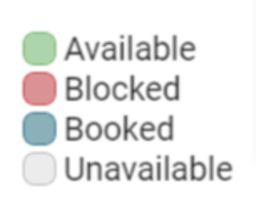 3. A colour key provides you with information on the status of each interview slot.