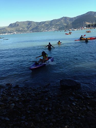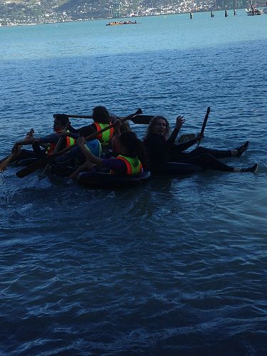 We showed perseverance with the raft making by working together as a team to build a raft with tubes and ropes to carry 5-6 people around a marker without falling apart.  We learnt how to kayak and it was fun playing piano keys where everyone had to hold onto each others' kayaks and two people had to walk across the keys.  We were allowed to jump off the Diamond Harbour wharf and Cameron did a big manu!