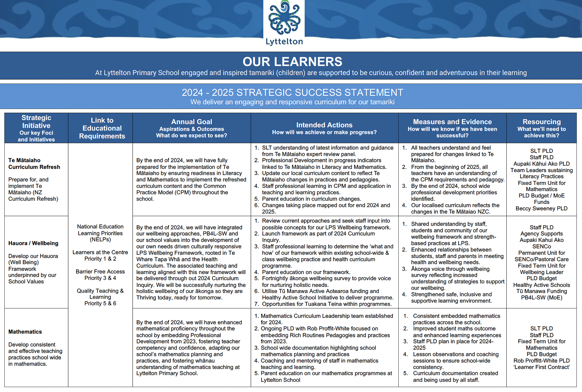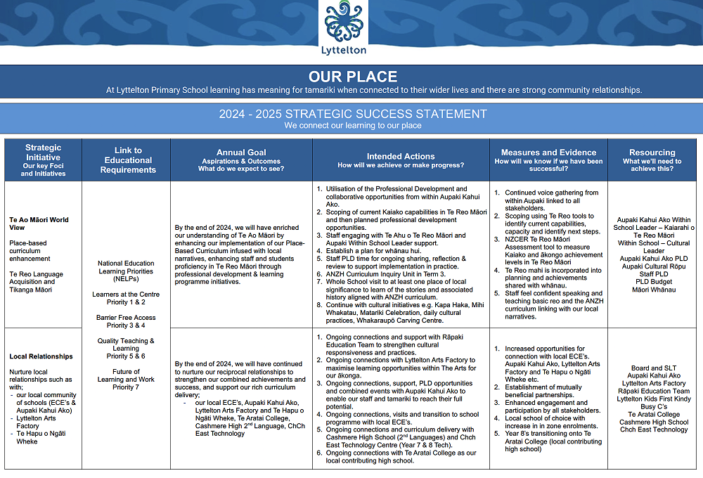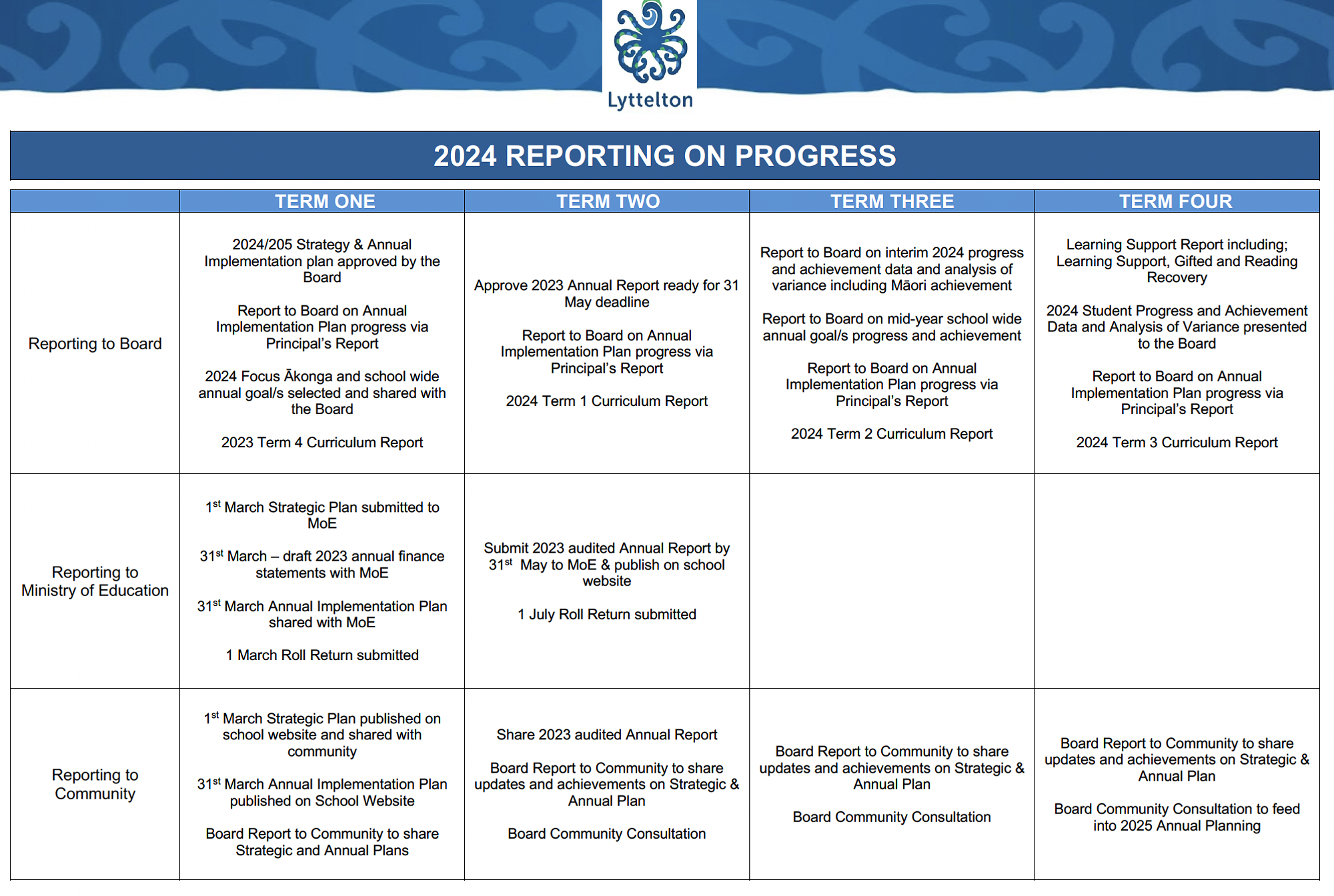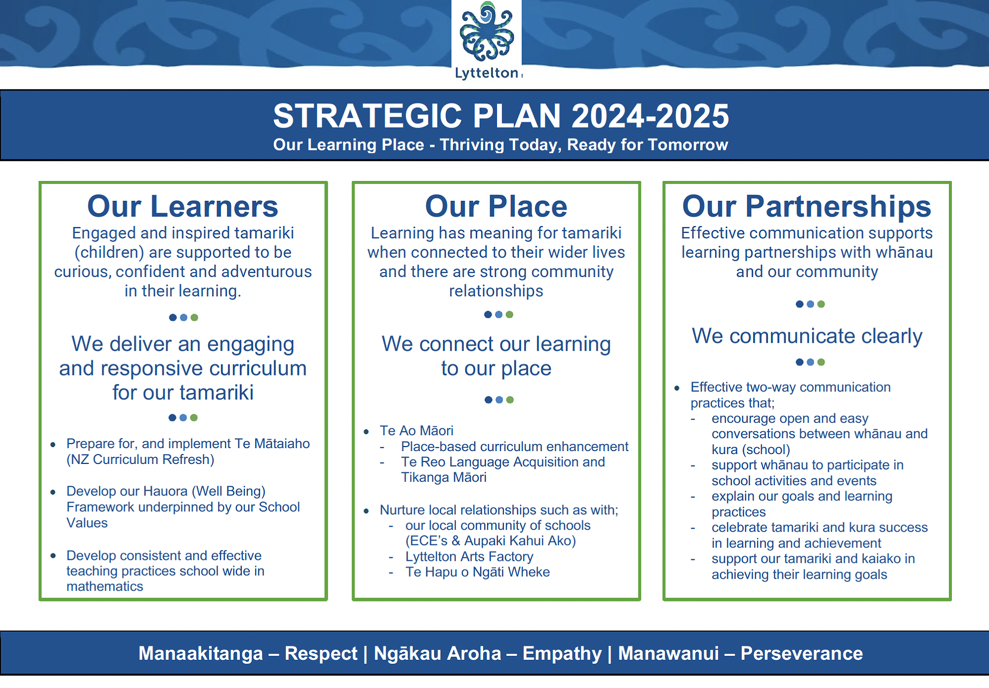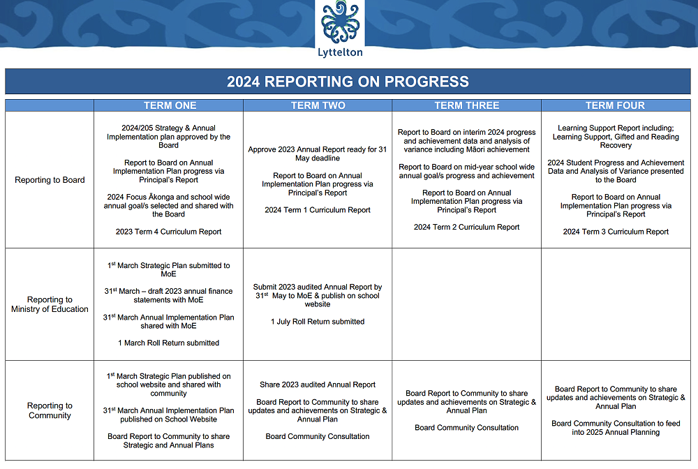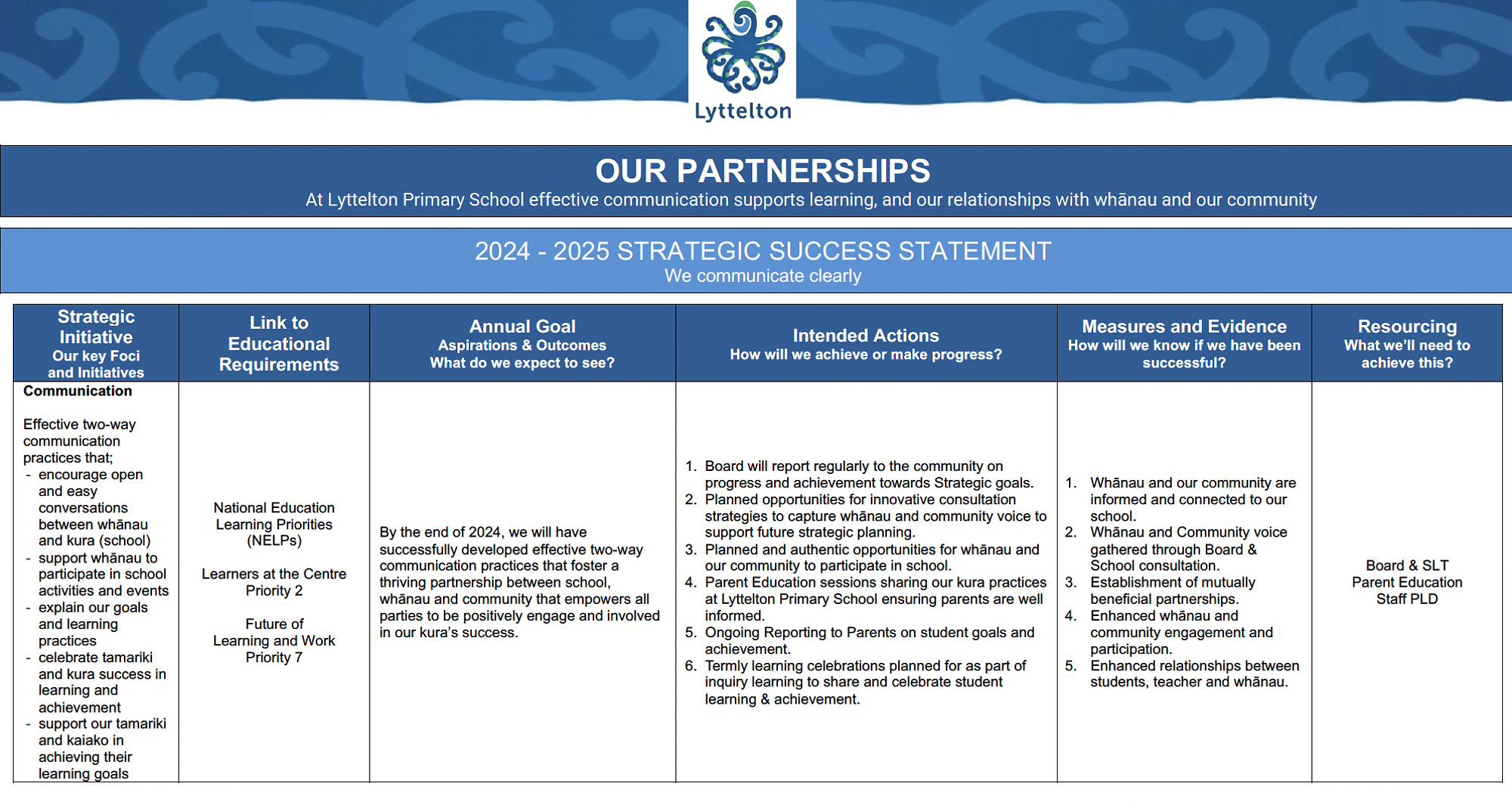 Following consultation and review the School Board sets the strategic priorities and goals for the school to be implemented and achieved by school leadership and staff through the implementation process.