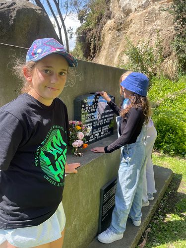 Last year a group of our tamariki did a hikoi (walk) to the Rongo stone at Anderson's Bay as part of a local history research project they had been doing. Every year on November 5th there is a commemoration for the prisoners from Taranaki and Parihaka that worked on the stone walls and roads around Dunedin between 1869-1879.