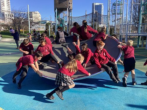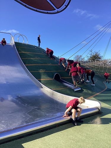 We had a fantastic trip to Margaret Mahy Playground and Tūranga|Central Library last Thursday, to extend learning in our Forces inquiry. The playground offered the opportunity to observe the effects of lots of different forces while we played. At the library, we saw the book sorting machine that works 24/7, sorting up to 2000 books a day as they are returned to the Library. We also learnt about Auahatanga, the creative space on the top floor of the Library.