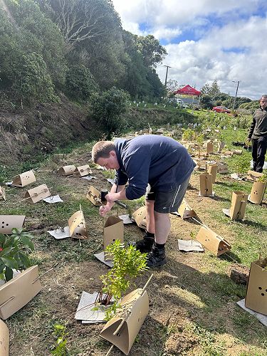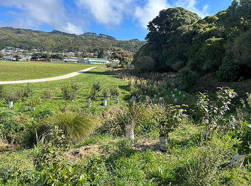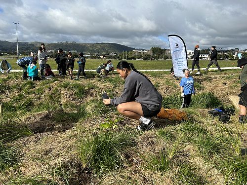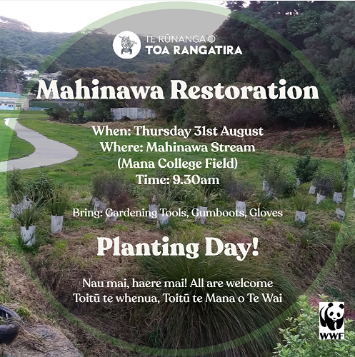 Yesterday the yr12/13 Outdoor Ed class, plus four students from the Mana Goes Green environmental group, teamed up with Ngāti Toa iwi, the Porirua City Council, Porirua School and other members of the public to help plant out the Mahinawa Stream for a second year in a row. The weather was perfect, the Maramataka in sync and the community spirit was alive. Our crew stayed on throughout the day to help with placing weed mats and wind/ pukeko guards. There are plans afoot to take on stage 3 next year further up the stream. Our students were awesome! They were great ambassadors for Mana College, and can take pride in giving back to the taiao and helping Mahinawa get back to it's former glory. Once again I was super proud of them.