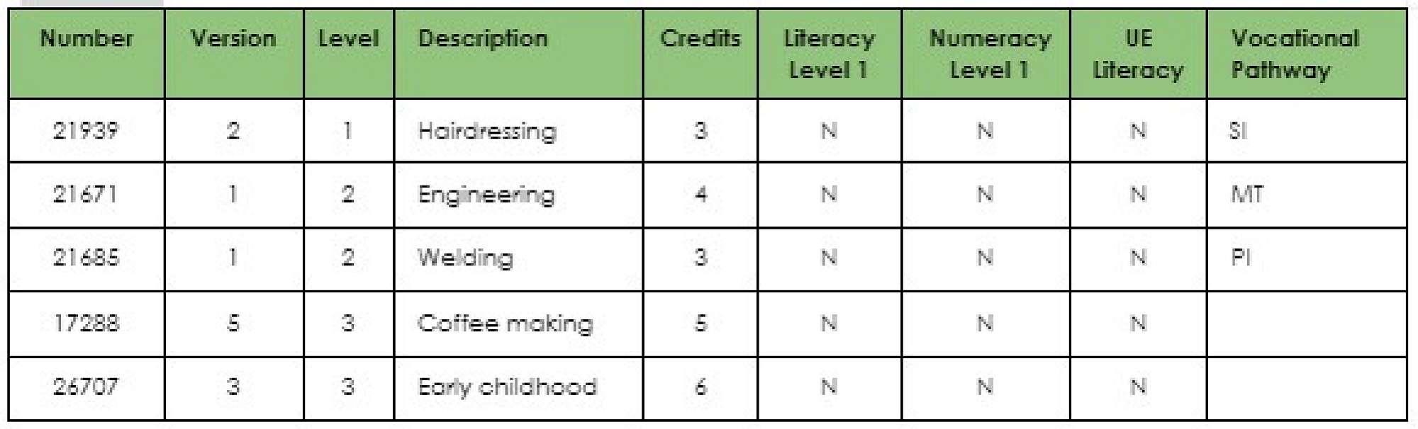 Short term courses provided by Whitireia Polytechnic and other tertiary providers, for example: