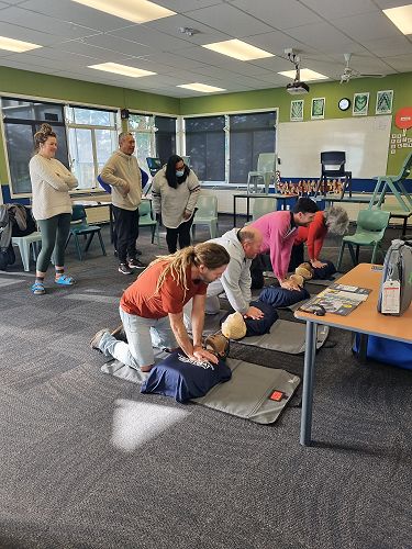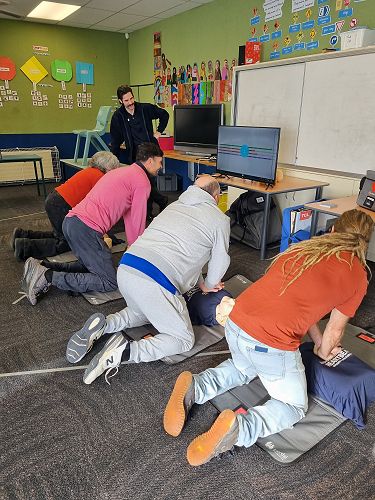 Te Whare Ako staff completing Heartbeat CPR training with Wellington Free over the school holidays was a great refresher for CPR and use of the defibrillator.