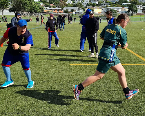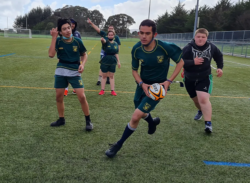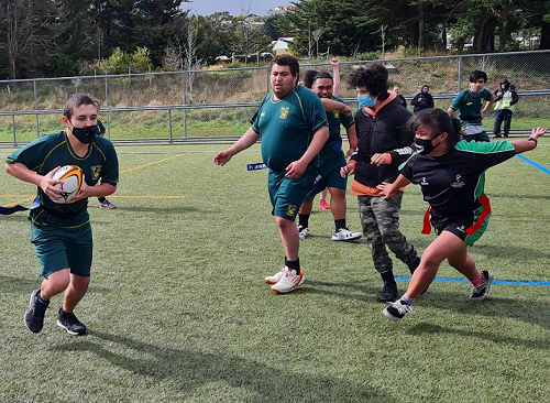 After a long overdue hiatus, Te Whare Ako finally got their first taste of the College Sport AWD (Athletes with Disabilities) programme for 2022. On a blustery and sometimes wet day, 5 schools braved the elements to compete in the Rippa Rugby Tournament. Mana are the proud defending champions from 2020 (the event in 2021 was cancelled).